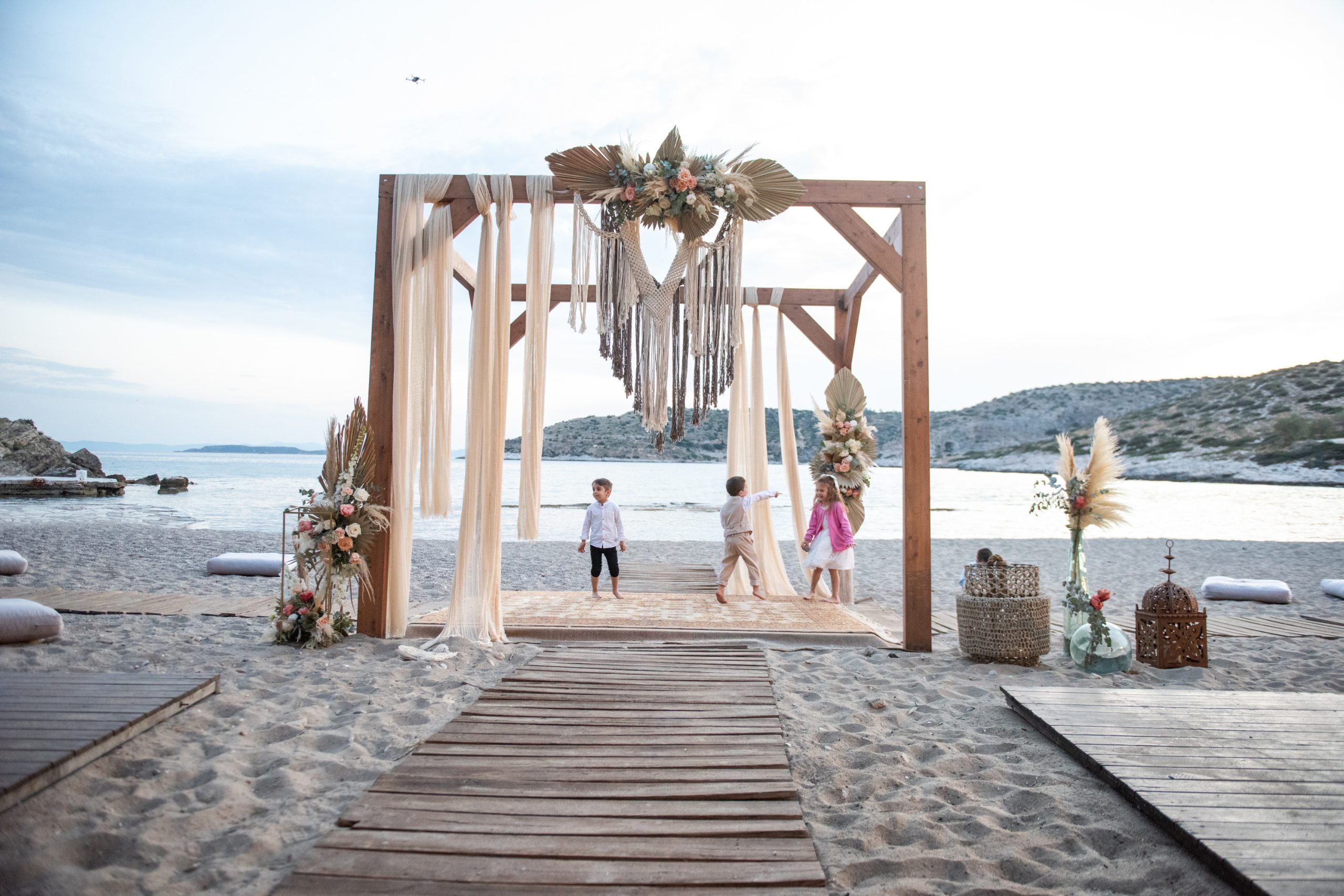 Ένας γάμος γεμάτος ρομαντισμό και ανεμελιά, όπου το απαλό θαλασσινό αεράκι αγκαλιάζει τις boho λεπτομέρειες και δημιουργεί ένα ονειρικό σκηνικό. Αέρινα υφάσματα, μακραμέ, λουλούδια σε γήινες και παστέλ αποχρώσεις, ξύλινα διακοσμητικά και χρυσές πινελιές συνθέτουν μια μοναδική ατμόσφαιρα που εκπέμπει φυσική κομψότητα και ελευθερία.