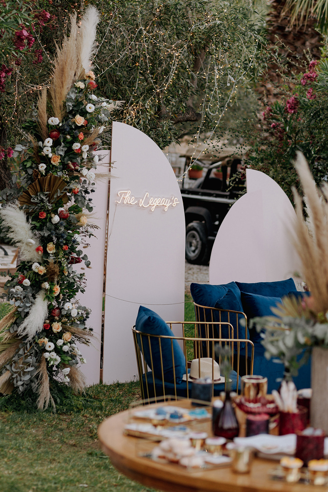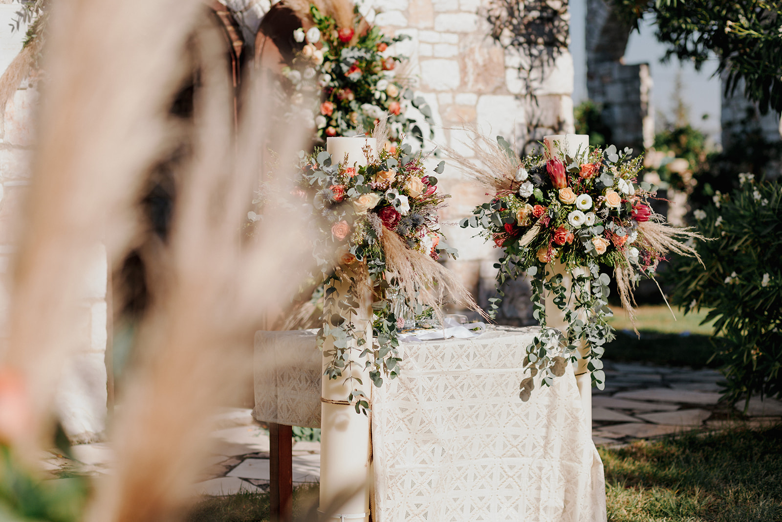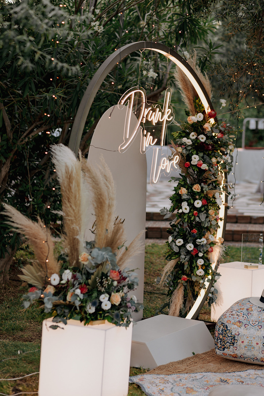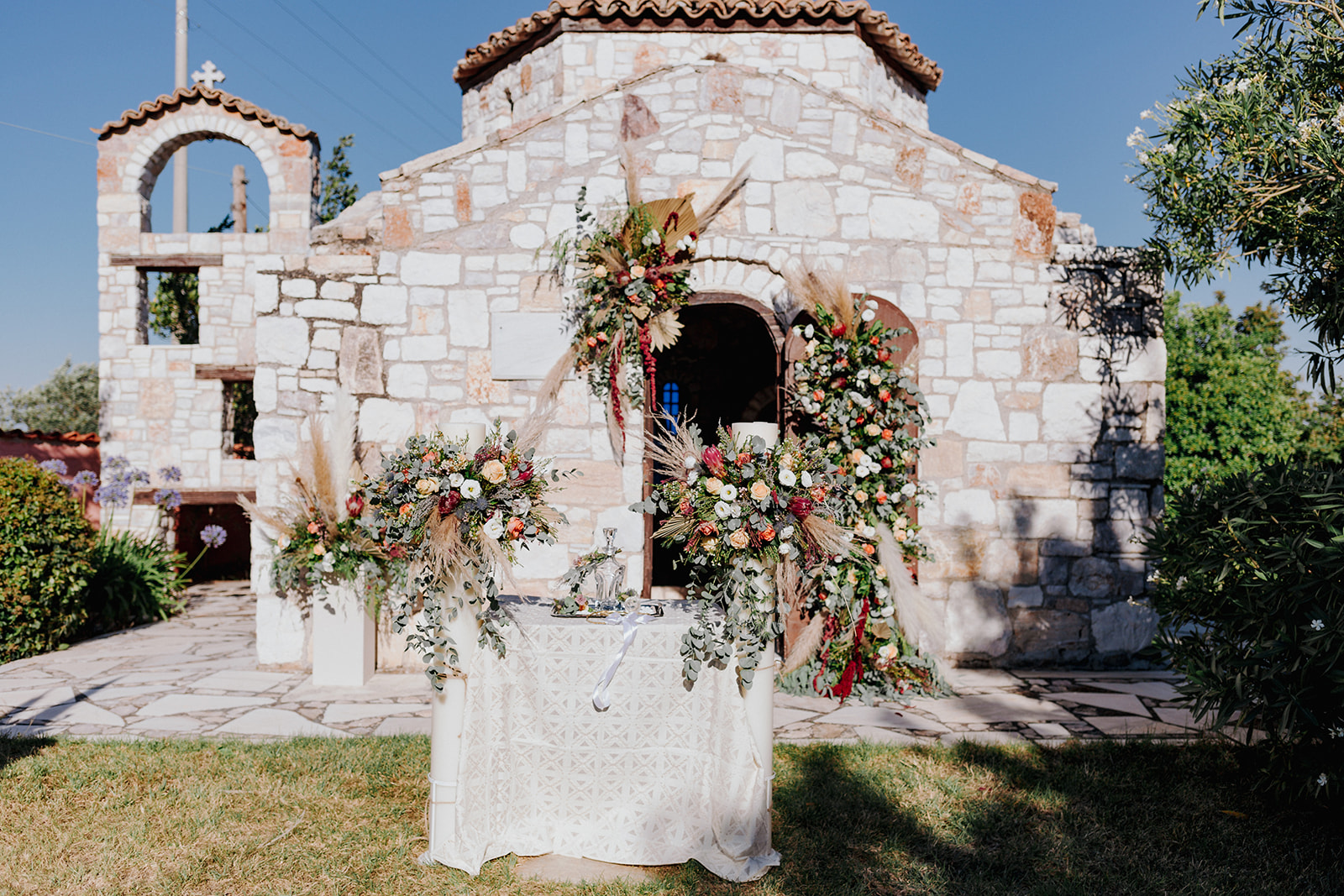 Ρομαντικά, απαλά και εκλεπτυσμένα χρώματα, λουλούδια σε ρομαντικές συνθέσεις, fairy lights, boho chic & elegant στυλ προκύπτει από τις λεπτομέρειες του στολισμού