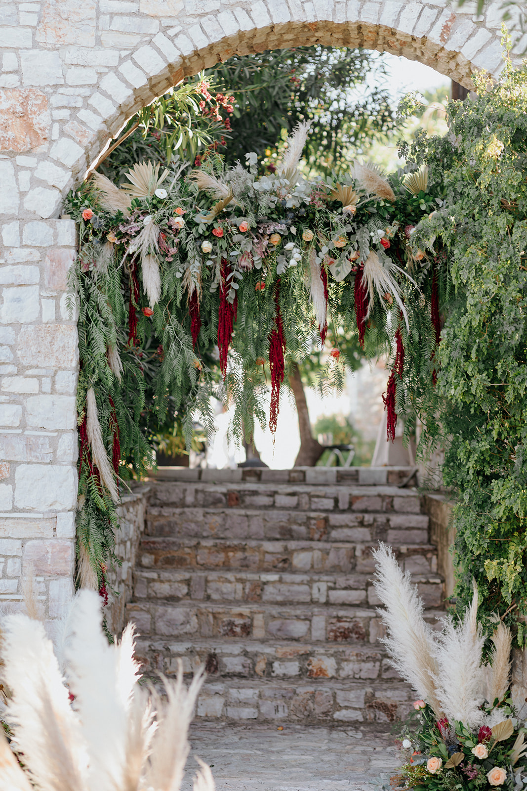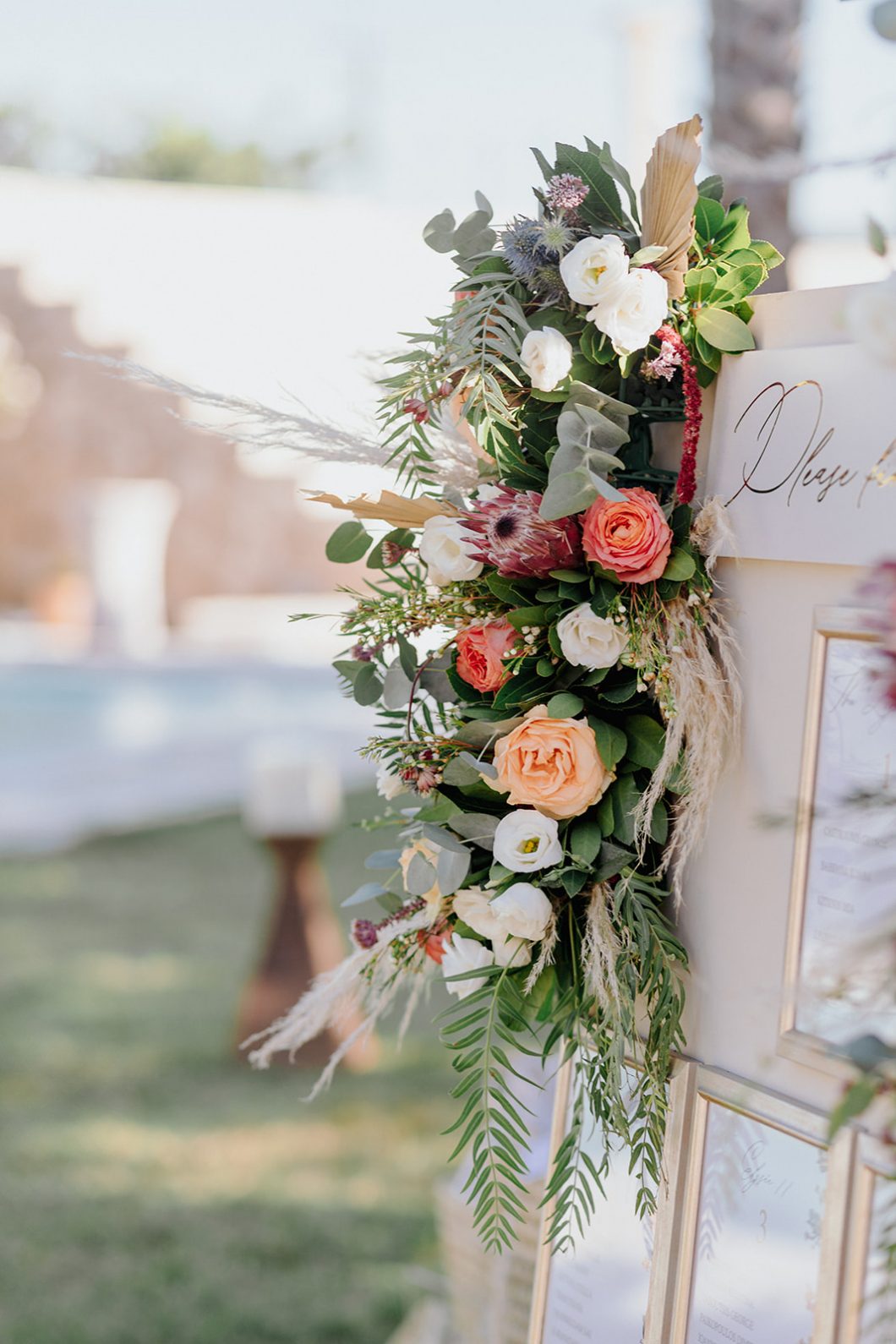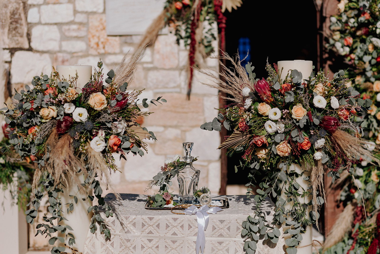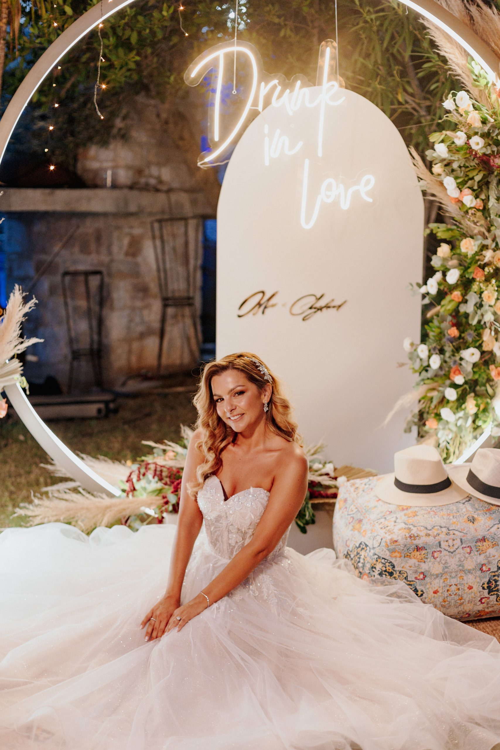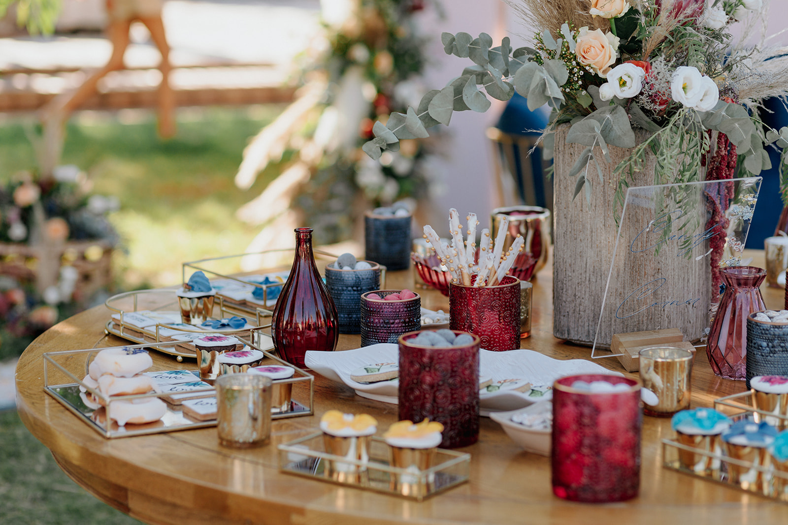 Ρομαντικά, απαλά και εκλεπτυσμένα χρώματα, λουλούδια σε ρομαντικές συνθέσεις, fairy lights, boho chic & elegant στυλ προκύπτει από τις λεπτομέρειες του στολισμού