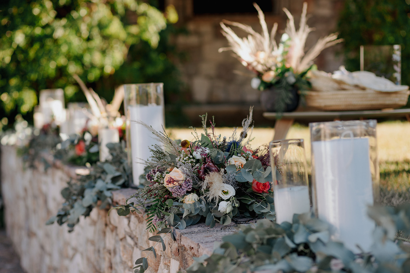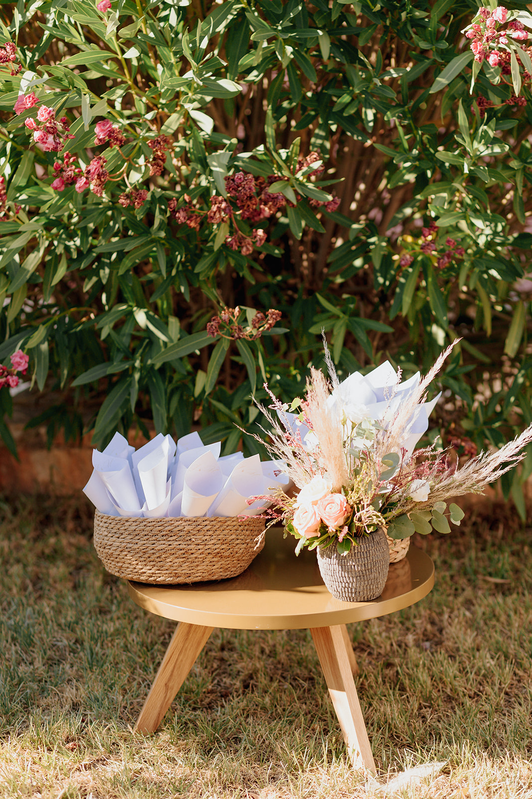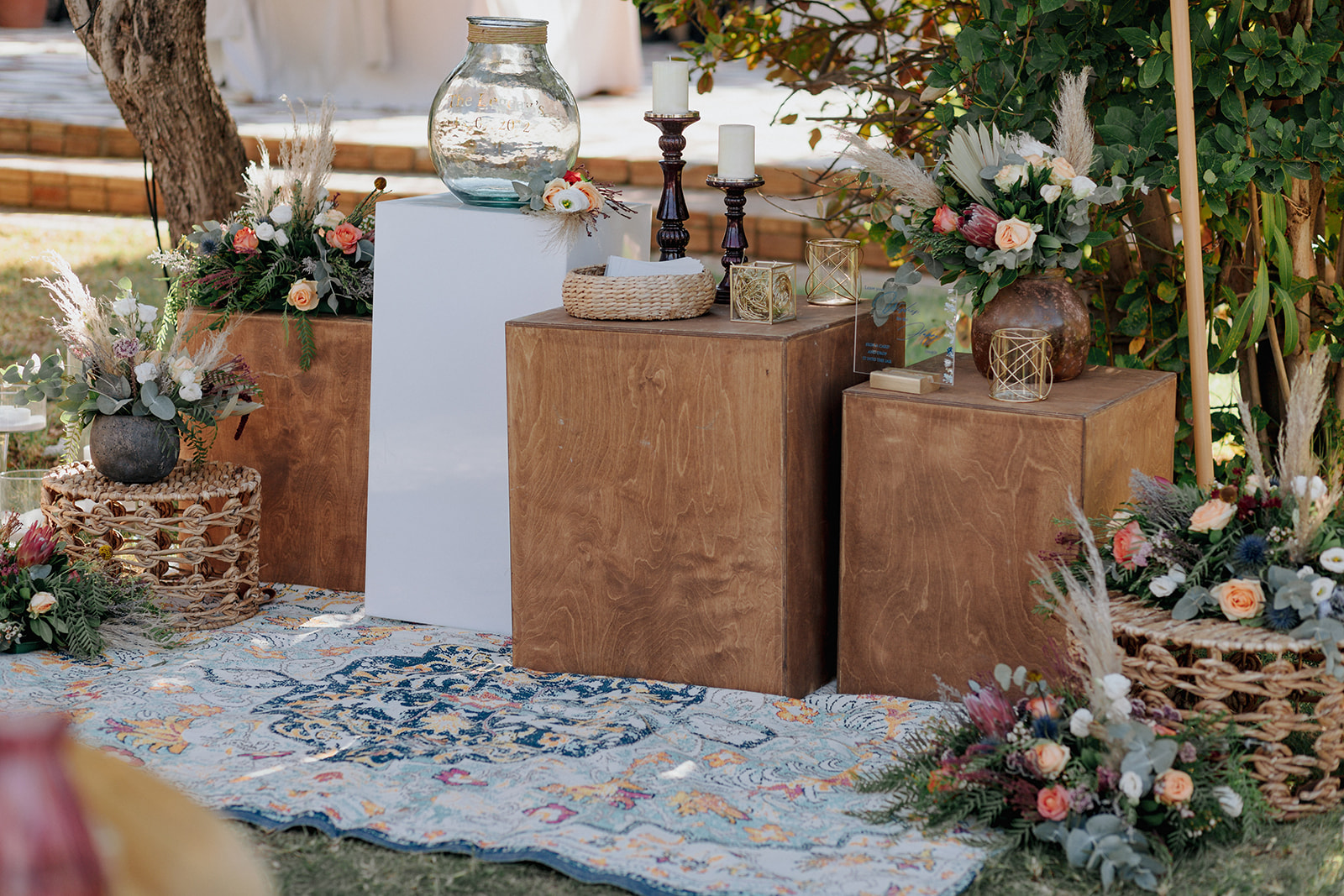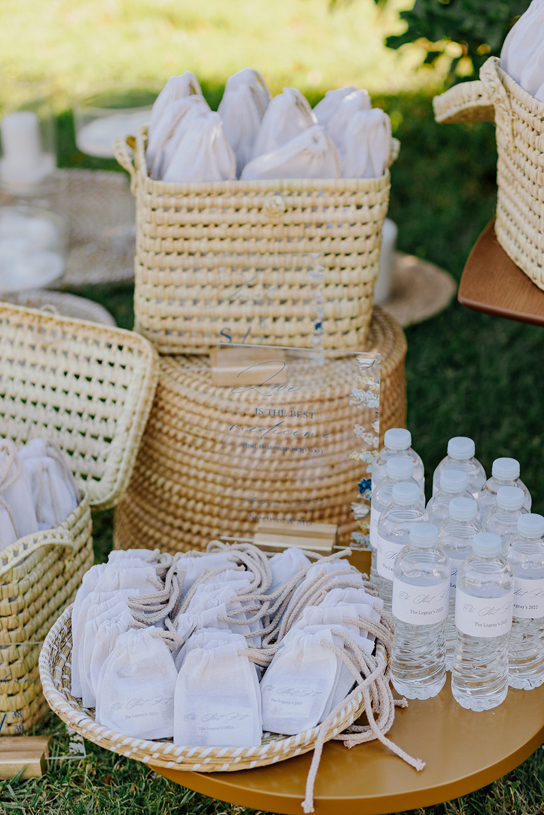 Ρομαντικά, απαλά και εκλεπτυσμένα χρώματα, λουλούδια σε ρομαντικές συνθέσεις, fairy lights, boho chic & elegant στυλ προκύπτει από τις λεπτομέρειες του στολισμού