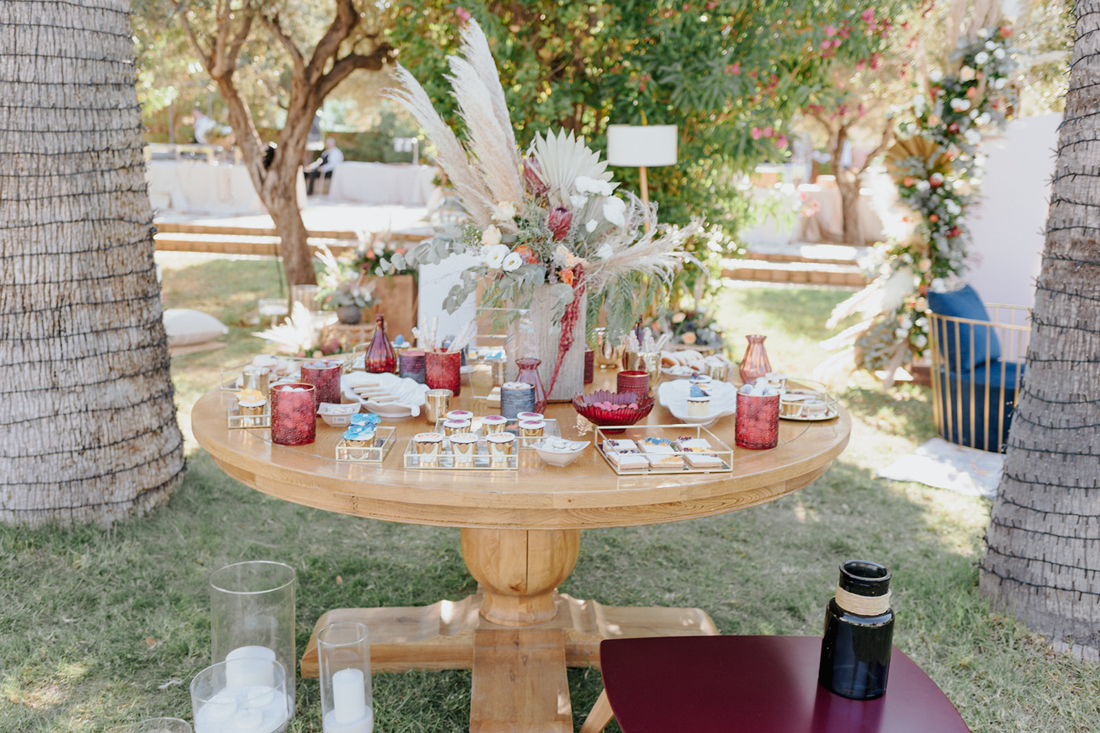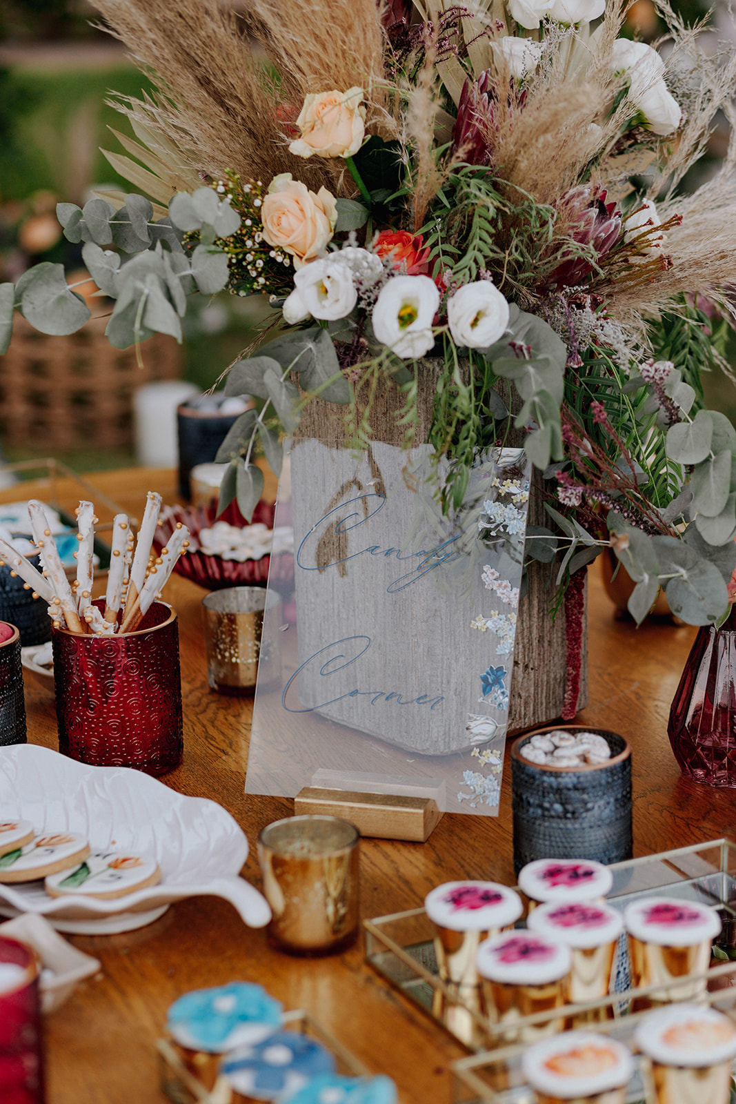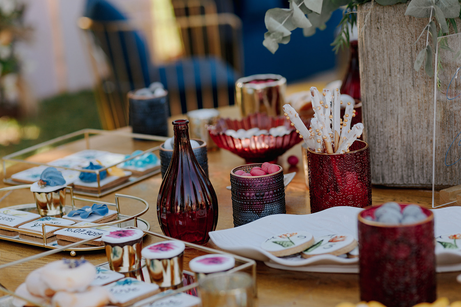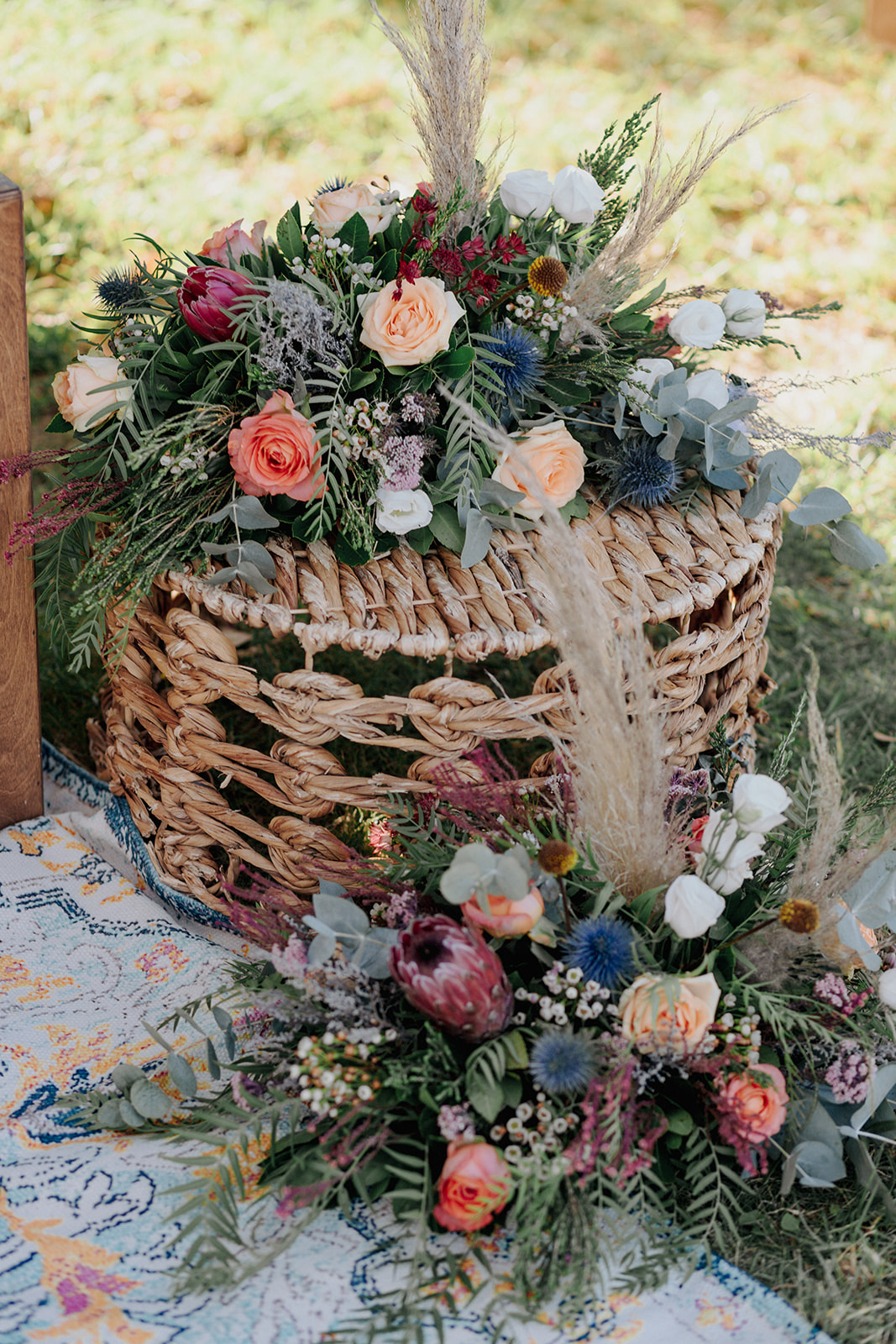 Ρομαντικά, απαλά και εκλεπτυσμένα χρώματα, λουλούδια σε ρομαντικές συνθέσεις, fairy lights, boho chic & elegant στυλ προκύπτει από τις λεπτομέρειες του στολισμού