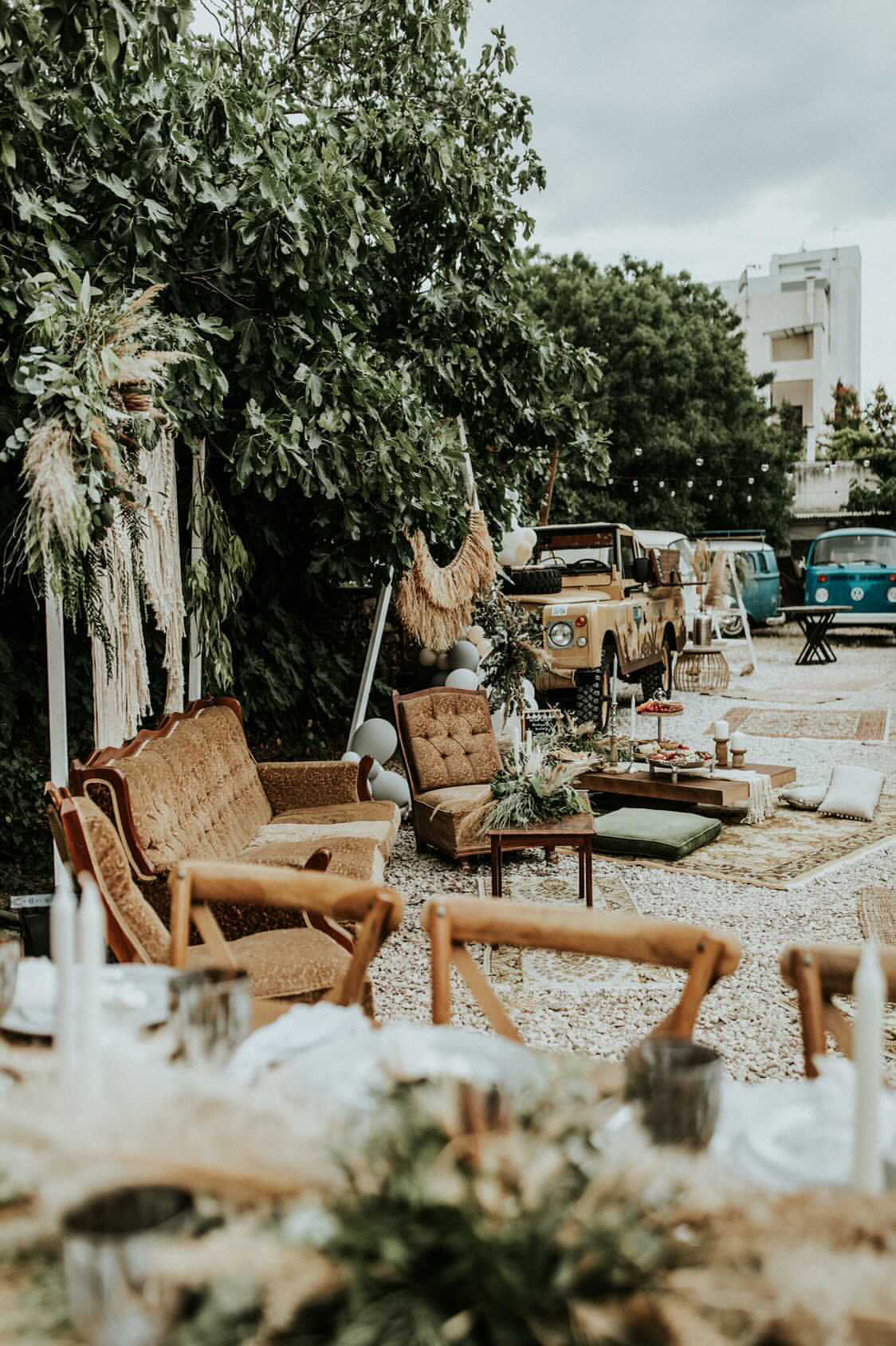 Μια εναλλακτική βάπτιση boho-inspired με φυσικά στοιχεία και γήινους τόνους, μακραμέ, pampas και ευκάλυπτος συνθέτους μία μαγική βραδιά σε ένα old school garage venue